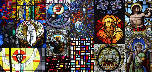 An der li. Langhauswand: Kreuzweg in 22 Glasfenstern in Doppelreihe.